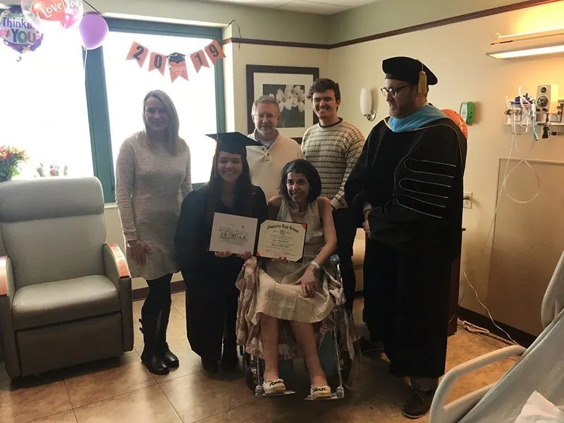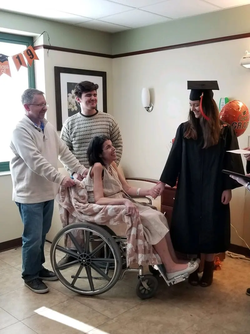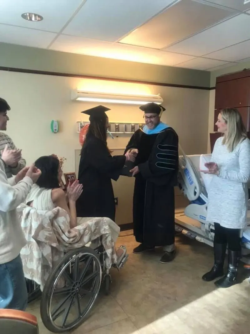 แต่ด้วยความเอื้ออาทรอย่างถึงที่สุดจากทางโรงเรียน ทำให้สิ่งที่ครอบครัวนี้ไม่คิดฝันมาก่อน เกิดขึ้นจนได้ โดยพบว่าทันทีที่ครูใหญ่ ไมค์ แมซซา พร้อมด้วยคณะครูจากโรงเรียนมัธยมปลายที่แอบบี้เรียนอยู่ ทราบข่าวนี้เข้า พวกเขาก็ได้เตรียมจัดพิธีจบการศึกษาเป็นกรณีพิเศษ ให้แก่เด็กสาวคนนี้ ภายในห้องพักของโรงพยาบาลที่สเตฟานีรักษาตัวอยู่