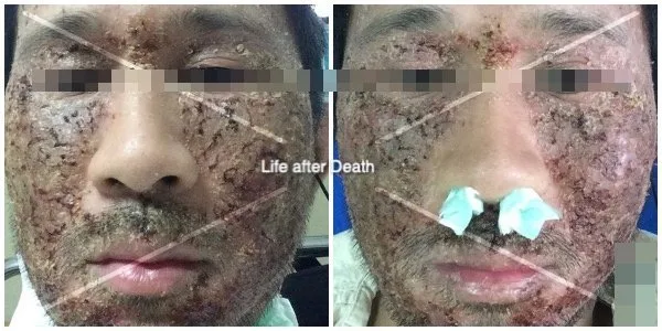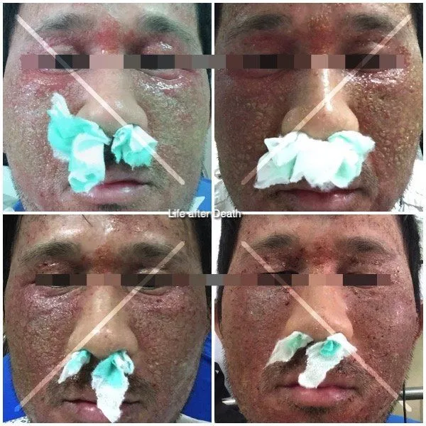 น้ำเหลืองไหลออกมาเยอะมาก หน้าเละเหมือนโดนน้ำร้อนลวก สภาพจิตใจผมแย่มากในเวลานั้น