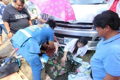เกิดปวดท้องกะทันหัน ทำท่าเหมือนเด็กจะคลอด ญาติๆ จึงแจ้งทีมพยาบาลฉุกเฉินให้รีบมารับตัวไปทำคลอดที่โรงพยาบาล ระหว่างที่ญาติๆ พาสาวท้องแก่มานั่งพักบริเวณหน้ารถตู้ สีบรอนซ์เงิน หมายเลขทะเบียน 36-0113 นครราชสีมา