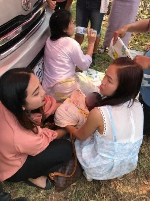 ซึ่งจอดอยู่บริเวณบ้านที่จัดงานแต่ง น.ส.ณัฐภรณ์ มีอาการปวดท้องมากจนทนไม่ไหว เด็กทารกคลอดออกมาเอง ท่ามกลางความตื่นตกใจของคนที่มาร่วมงาน