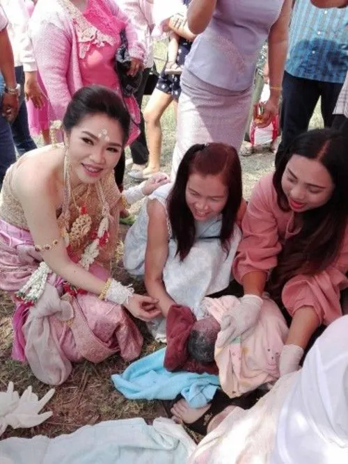 โดยพูดเป็นเสียงเดียวกันว่า ถือเป็นฤกษ์ดีมหามงคลของงานแต่งงาน ที่มีเด็กทารกแรกคลอด โผล่ลืมตาดูโลกกลางงานแต่งและเป็นโชคดีของเจ้าบ่าวเจ้าสาว