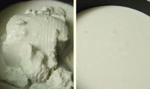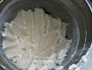4.นำภาชนะดังกล่าวไปแช่ในช่องแข็ง จนกะทิเริ่มแข็งตัว