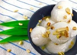 5.เนื้อมะพร้าวอ่อนขูดเป็นเส้น (มีหรือไม่มีก็ได้)