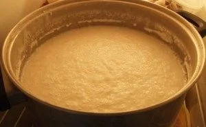 3.นำกะทิมาพักให้เย็น จากนั้นเทใส่ภาชนะที่เหมาะกับการแช่เย็น
