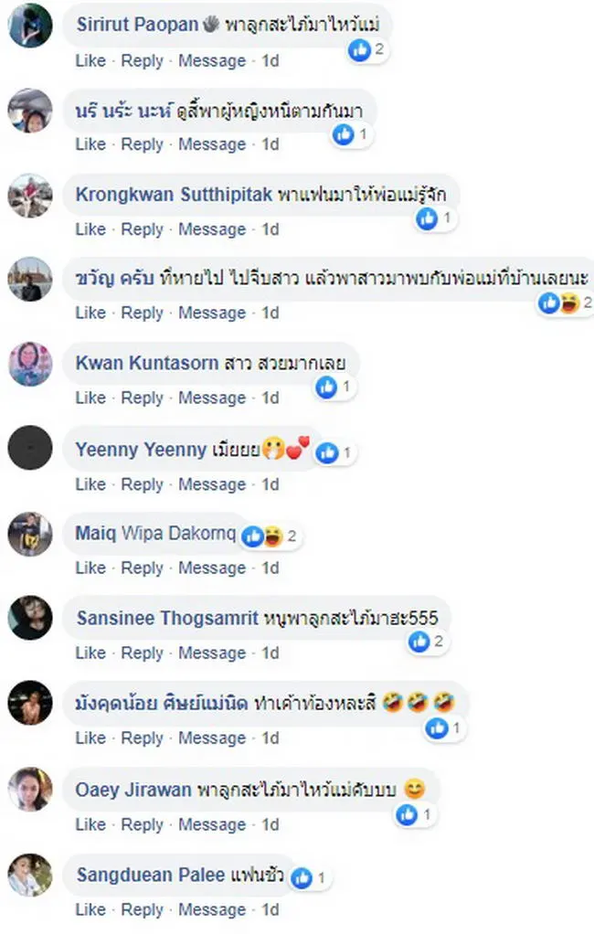 ซึ่งทางคุณ Bebe Sayttapukdee ก็ได้โพสต์บอกว่าเจ้าแมวหนุ่มพาลูกสะใภ้มาให้ ซึ่งตอนแรกเธอประหลาดใจเล็กน้อยและกลัวว่าจะมีน้องติดมาในท้องอีก แต่คิดไปคิดมาก็ดีแล้วที่เจ้าแมวหนุ่มกลับมาบ้าน และเธอก็ใจอ่อนให้เข้ามาในบ้านพร้อมให้อาหารกินด้วย