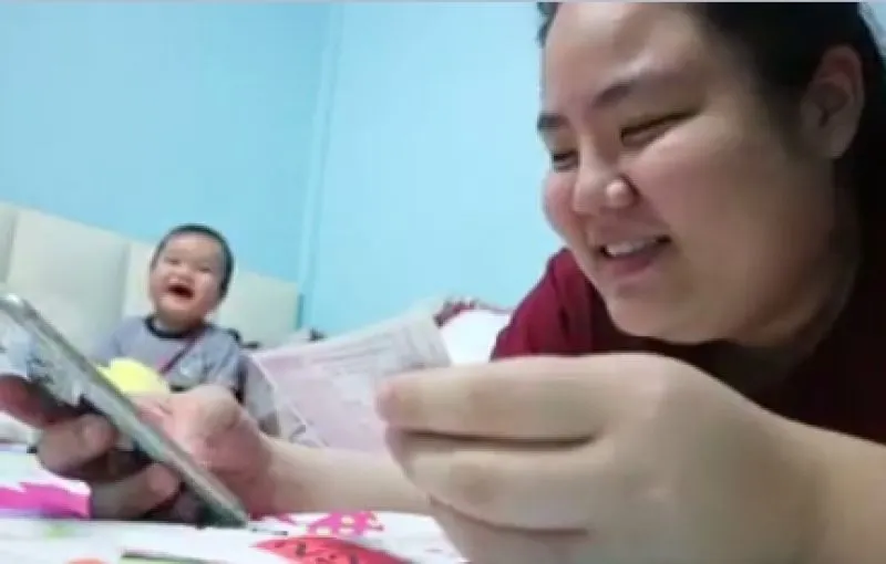 คุณแม่ หยิบมือถือ ตรวจลอตเตอรี่ กลับเห็นปฏิกิริยาลูกน้อย อย่างฮา (คลิป)