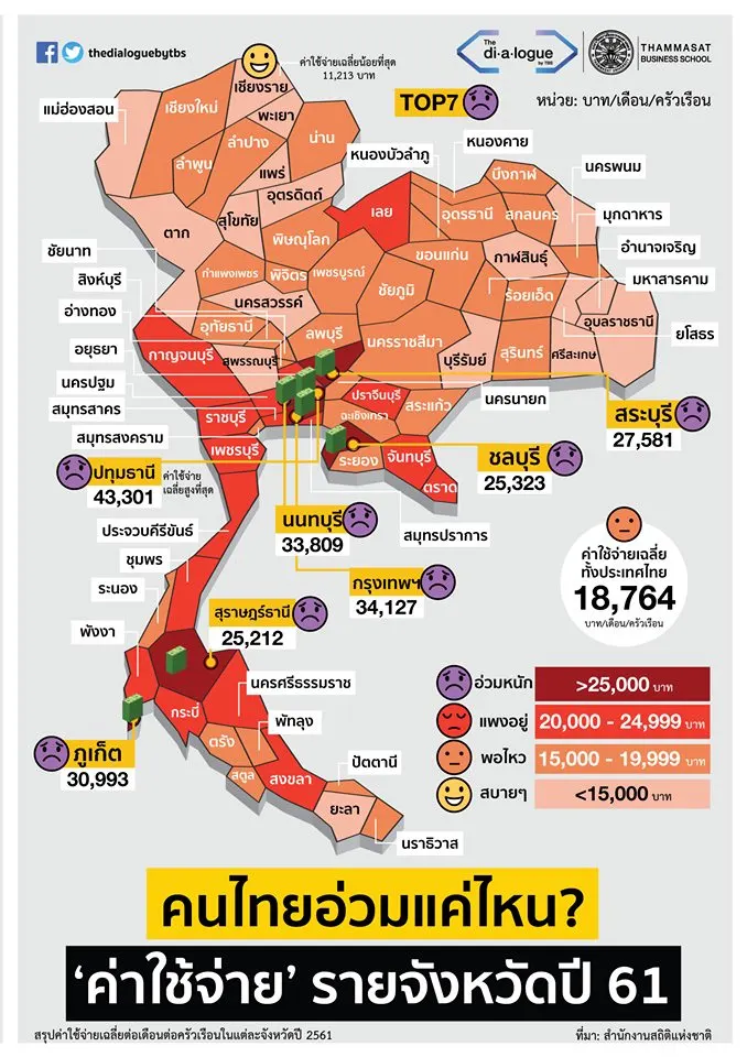 อ่วมแค่ไหน?ค่าใช้จ่ายต่อเดือน ต่อครัวเรือนรายจังหวัด ปี 2561