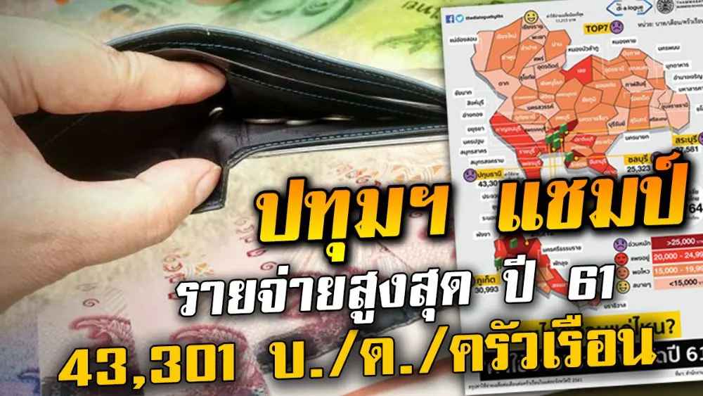 อ่วมแค่ไหน? ค่าใช้จ่ายต่อเดือน ต่อครัวเรือนรายจังหวัด ปี 61 พบปทุมธานี รายจ่ายสูงสุด นำกทม.