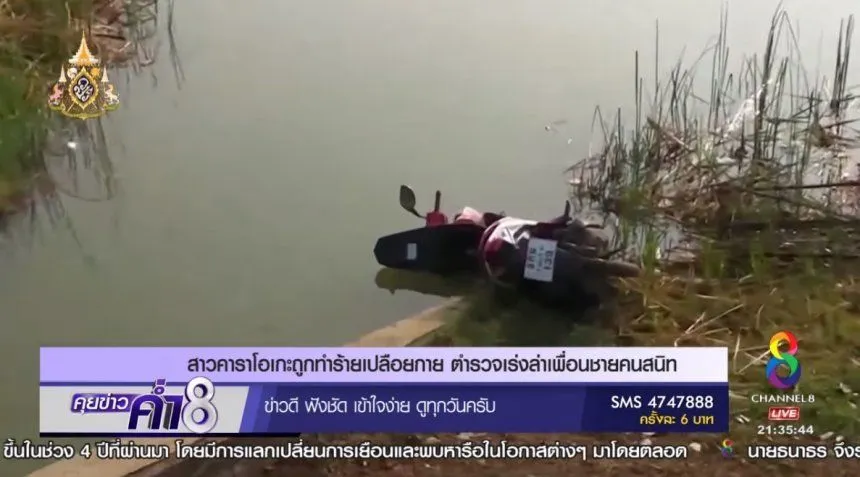 ที่เกิดเหตุชาวบ้านพบรถจักรยานยนต์ ตกลงไปในอ่างเก็บน้ำห้วยทราย สภาพตะแคงล้อหน้าจมอยู่ขอบอ่างเก็บน้ำ และพบเอกสารใต้เบาะรถ ทราบชื่อเจ้าของรถคือนางสาววริศรา ทาแว่น อายุ38ปี ทางนางแสงจันทร์ มูลซาว ได้ติดต่อนางสงค์ ทาแว่น ซึ่งเป็นแม่ของเจ้าของรถจยย.คันดังกล่าว มาดูที่เกิดเหตุ และเล่าว่า ลูกสาวทำงานเป็นพนักงานเสิร์ฟของร้านคาราโอเกาะแห่งหนึ่ง ห่างจากที่พบรถจยย.ประมาณ500เมตร