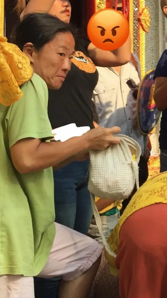 จากการสอบถามพบว่าหญิงดังกล่าวปฎิบัติแบบนี้ประจำ และส่วนมากก็ไม่ได้เอาความเพราะเอาลูกน้อยมาด้วย ซึ่งลูกน้อยร้องให้เสียงดังในขณะที่แม่ถูกจับได้ ไม่ได้เอาความอะไร เพราะคิดว่าเป็นงานบุญ ฝากเตือนภัยด้วยนะคะ ในวัดก็ไม่เว้น บาปกรรมตกนรก ขโมยตามงานบวช ขโมยล้วงกระเป๋า