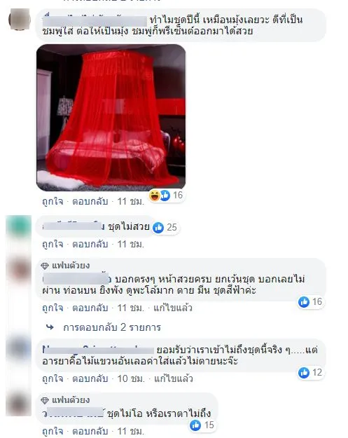 ซึ่งเป็นสร้อยคอตัวเรือนไวท์โกบด์ประดับเพชรกว่าล้านบาทเลยทีเดียว ถึงแม้จะแต่งตัวแพงขนาดนี้แต่ก็ดังโดนวิจารณ์กันไฟลุก โดยบางส่วนวิจารณ์ว่า.. ถ้าเป็นสีเหลืองจะเหมือนห่อสังฆทานมาก, ทำไมชุดปีนี้ เหมือนมุ้งเลย ดีที่เป็นชมพู่ใส่ ต่อให้เป็นมุ้ง ชมพู่ก็พรีเซ็นต์ออกมาได้สวย, ชุดอะไร ไม่สวยเลยวันนี้ วันก่อนๆนางสวยมาก ฯ