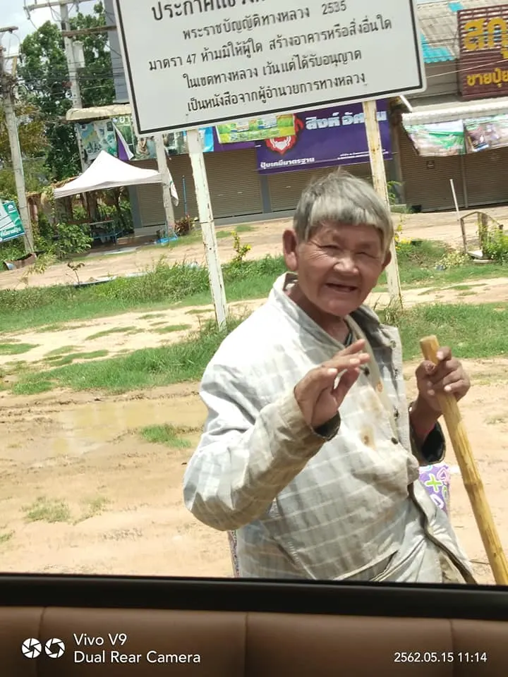 ยาย...ไม่ยอมให้ดูและตอบแค่ว่ายายจะเดินเอาไม่มีค่ารถจะขอความช่วยเหลือเป็นอาหารเท่านั้น