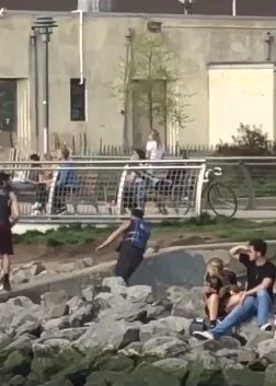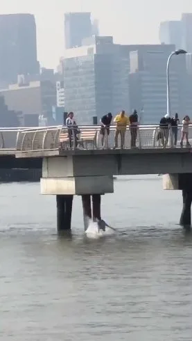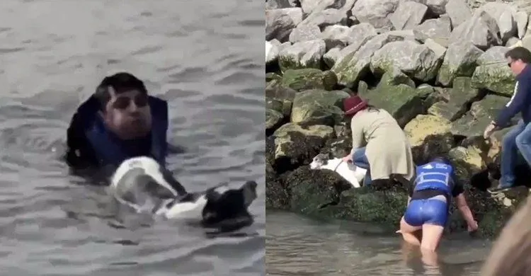 "หนุ่มฮีโร่" ตัดสินใจบ้าบิ่นกระโดดสะพานสูง ช่วยเจ้าหมาที่กำลังจมน้ำ