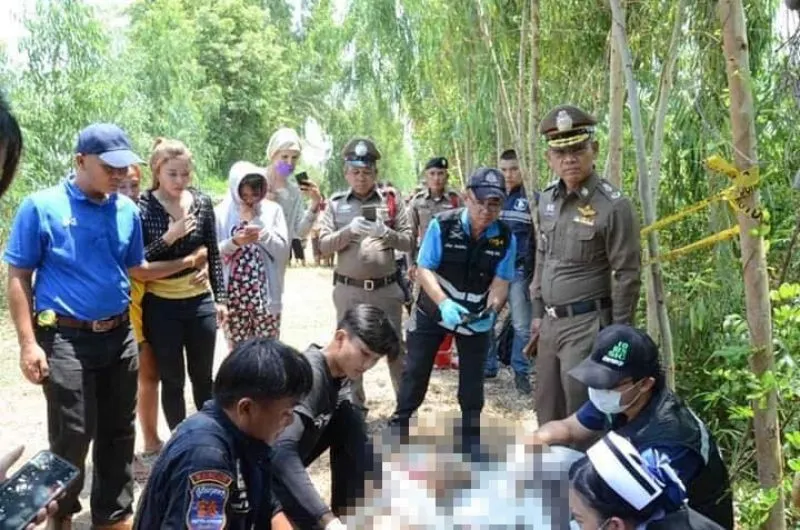 โดยที่เกิดเหตุอยู่กลางทุ่งนามีชาวบ้านมาดูเหตุการณ์จำนวนมาก โดยเจ้าหน้าที่พบศพชาย 2 คน อายุ ประมาณ 25-35 ปี นอนเสียชีวิตร่างทับกันอยู่ริมฝั่งแม่น้ำชี ทราบชื่อต่อมาคือนายนิวัฒน์ อัสโย อายุ 36 ปี และนายวัคคี อัสโย อายุ 24 ปี ทั้งสองเป็นพี่น้องกัน และเป็นชาวบ้านท่าตูม ม.8 ต.ท่าตูม อ.เมือง จ.มหาสารคาม