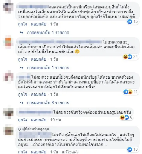 เกิดการวิพากษ์วิจารณ์กันเกือบพันคน กับรูปหญิงสาวรายหนึ่งโพสภาพลงโซเชี่ยล แต่งกายวาบหวิว ในชุดที่คาดว่าจะเป็นชุดคอสเพลย์ดูคล้ายกับชุดข้าราชการ โดยชาวเน็ตส่วนใหญ่คอมเมนต์กันถึงประเด็นนี้ ว่าเหมาะสมหรือไม่?