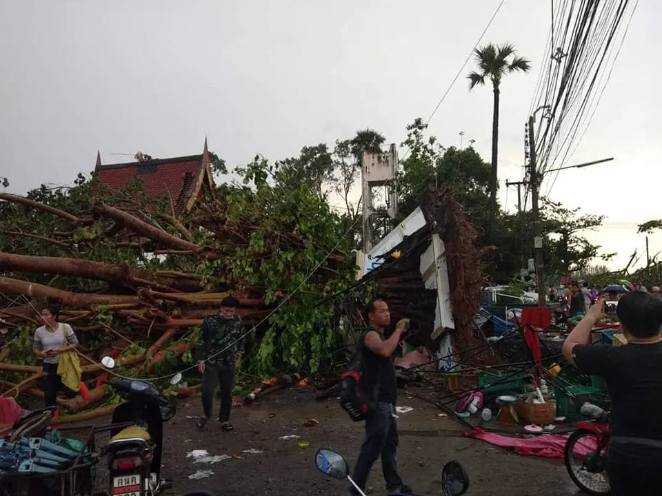 ค่ำของวันนี้( 21 พ.ค.2562) เมื่อเวลาประมาณ 17.00 น. เกิดพายุฝนและลมพายุเข้าถล่มตลาดป่างิ้ว อ.สารภี จ.เชียงใหม่ เบื้องต้นมีต้นไม้ล้มทับคนมีผู้บาดเจ็บ 7 ราย รายที่ 1หมดสติไม่มีชีพจร ทำการ cpr รถพยาบาลโรงพยาบาลสารภี นำส่ง รพ.ใกล้หมอ อีก 6 ราย แผลถลอกตามรายการ และมีแผลน้ำมันลวก โดยมีรถกู้ชีพท่าวังตาล และรถพยาบาลกู้ภัยสารภี นำส่ง รพ.ใกล้หมอ
