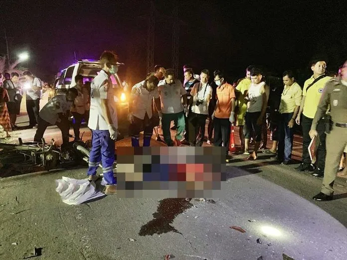 เมื่อเวลา 00.10 น. วันที่ 22 พ.ค. ร.ต.อ.สถาพร จ้องโก้ ร้อยเวร สภ.เมืองตรัง รับแจ้งเหจุรถชนกัน บริเวณบ้านทุ่งจันทร์หอม ม.2 ต.บ้านโพธิ์ อ.เมือง จ.ตรัง หลังรับแจ้งจึงรุดไปตรวจสอบพร้อมมูลนิธิกุศลสถานตรัง และแพทย์เวรโรงพยาบาลศูนย์