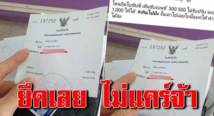 สาวหล่อขับเบนซ์ ไม่พอใจตำรวจปรับ 1,000 เลยให้ยึดใบขับขี่ โผล่ขอทำใบใหม่ที่ขนส่ง