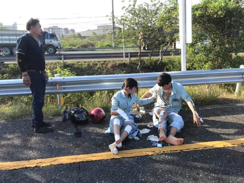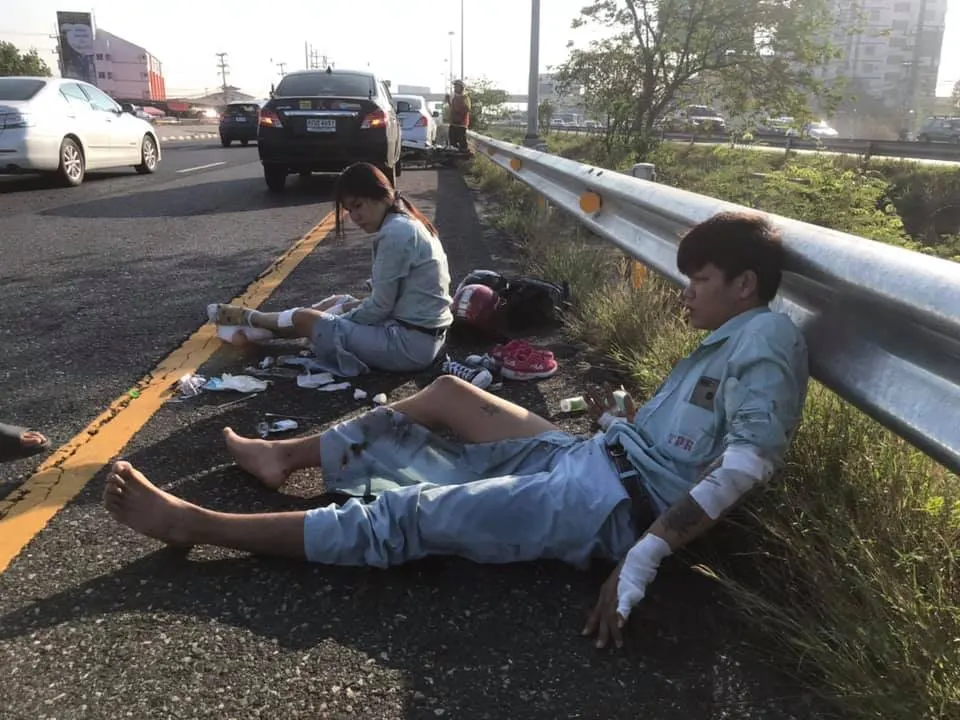 2 หนุ่มสาวจะไปทำงานถูกรถกระบะ อีซูซุ สีขาว 4 ประตูยกสูงชนแล้วหนี ปล่อยให้ทั้งคู่กลิ้งกลางถนนไถลไปไกลกว่า 100 เมตร ส่วนรถกระบะรีบขับหนีอย่างไว ใครมีภาพกล้องหน้ารถส่งมาให้หน่อยครับ เหตุเกิด ตรงข้ามนิคมอุตสาหกรรมอมตะซิตี้ชลบุรี เมื่อเวลา 07.00 น.วันที่ 21 พค. 2562
