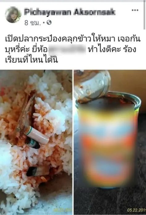 เป็นข่าวออกไปมากมายหลายช่อง หลายสำนักพิมพ์ เจ้าของโพสต์เลยเอามาบอกต่อกันนะคะ หลังสาวผู้ใช้เฟสบุ้คระบุว่า "เปิดปลากระป๋องจะคลุกข้าวให้หมา เจอก้นบุหรี่ที่สูบแล้ว ทำยังไงดี? ไม่มีเบอร์ติดต่อไปฟ้องร้องที่บริษัทด้วย" มีผู้แนะนำไว้ให้ร้องเรียนไปที่ สคบ. แต่ล่าสุด สาวเจ้าก็ออกมาโพสต์แล้วว่าขออนุญาตลบโพสต์ เนื่องจากบริษัทปลากระป๋องให้ลบ และล่าสุดเฟสบุ้คของสาวผู้นี้ก็โดนปิดไปแล้ว น่าจะเพราะ พอกลายเป็นข่าวดัง มีผู้เข้าไปแสดงความเห็นเยอะเกินไปหรือกลัวมีปัญหา และไม่ทราบว่าเหตุการณ์ดังกล่าวเป็นเรื่องจริงหรือไม่ แต่ถ้าเป็นเรื่องจริงทางบริษัทต้องมีมาตรฐานในการผลิตให้มากกว่านี้
