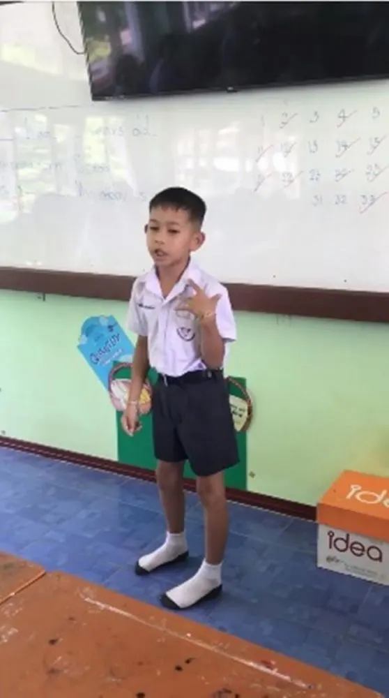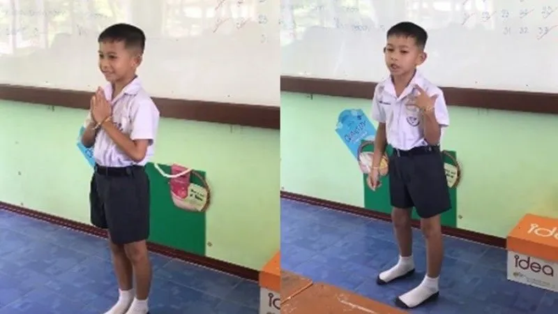 ผู้ใช้เฟซบุ๊กชื่อ "Panis Zaa" ได้โพสต์คลิปของเด็กนักเรียนชายคนหนึ่ง ที่ออกมา แนะนำตัวเป็นภาษาอังกฤษหน้าชั้นเรียนต่อหน้าเพื่อนๆ โดยเด็กคนนี้ มาพร้อมกับลีลาท่าทางสุดแซ่บ เปิดตัวหน้าชั้นเรียนด้วยการโบกมือแบบนางงาม อ่อนช้อยสุดๆ ก่อนจะทำออดอ้อนในการแนะนำตัว ที่มาพร้อมกับสำเนียงเป๊ะ จริตเลิศๆ จนเรียกเสียงปรบมืออย่างล้นหลาม