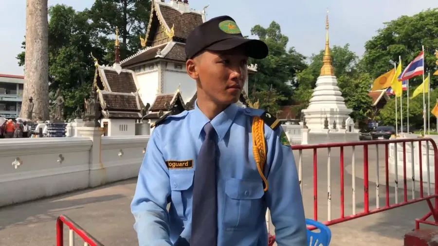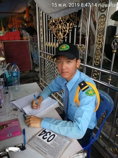 น้องวี บอกว่า เหตุผลที่ทำอาชีพรั ก ษ าคว า ม ป ลอ ด ภัย เพราะ เพื่อนรุ่นพี่ชวน อยาก แ บ่ งเบ าภ า ระ แม่ ที่ทำงานรับจ้า งเพี ยงคนเดียว จึงไปสมัครเป็น รปภ ทำงาน 12 ชั่วโมง วันละ 450 บาทให้แม่หมด