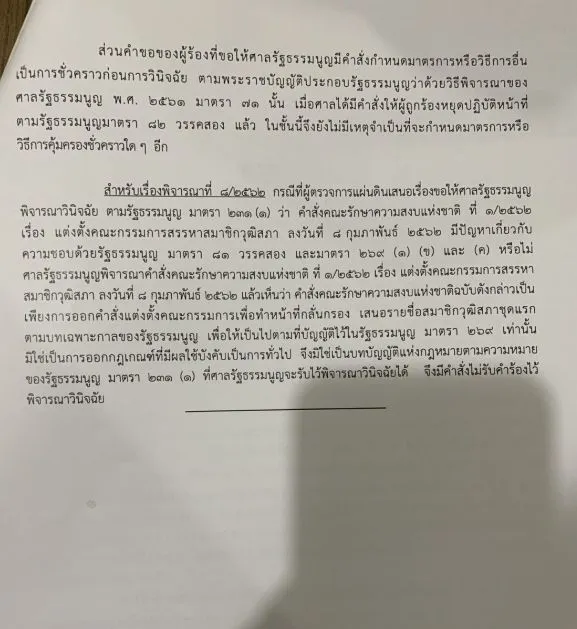 เวลา 15.00 น. ตุลาการศาลรัฐธรรมนูญ แถลงว่าได้มีมติเอกฉัทน์ 9 ต่อ 0 รับคำร้องของคณะกรรมการการเลือกตั้ง(กกต.) ไว้พิจารณา กรณีขอให้พิจารณาวินิจฉัยว่า คุณสมบัติของนายธนาธร จึงรุ่งเรืองกิจ หัวหน้าพรรคอนาคตใหม่ ถือครองหุ้นใน บริษัท วี-ลัค มีเดีย จำกัด ซึ่งประกอบธุรกิจสื่อ เข้าลักษณะต้องห้ามมิให้ใช้สิทธิสมัครรับเลือกตั้งเป็นส.ส. ซึ่งเป็นเหตุให้สมาชิกภาพ ส.ส.สิ้นสุดลงตามรัฐธรรมนูญ มาตรา 101 (6 ) ประกอบมาตรา 98 (3) หรือไม่