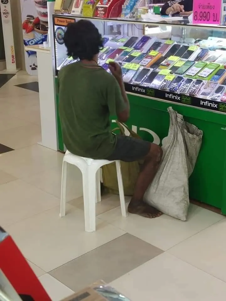 ผู้ชายคนนี้เดินมาซื้อโทรศัพท์ที่ร้าน ถามหารุ่นนี้แล้วบอกเอาเลย โดยที่ไม่ต่อสักคำ พร้อมกับควักเงินออกมานับ แล้วบอกว่า ผมมีแต่แบงค์ยี่สิบนะคับ 😊😊 ระหว่างที่แกนั่งรอเราทำเครื่องให้มี รปภ เดินวนมาเพื่อที่จะไล่เค้าหลายรอบมาก เลยบอก รปภ.ไปว่าเค้ามาซื้อโทรศัพท์พี่ไม่มีอะไรค่ะ เฮ้อออ..เค้าพูดรู้เรื่องนะ พูดจาดีด้วย ที่สำคัญเค้าเปิดบิลให้เราจ้าเช้านี้ 😀😀