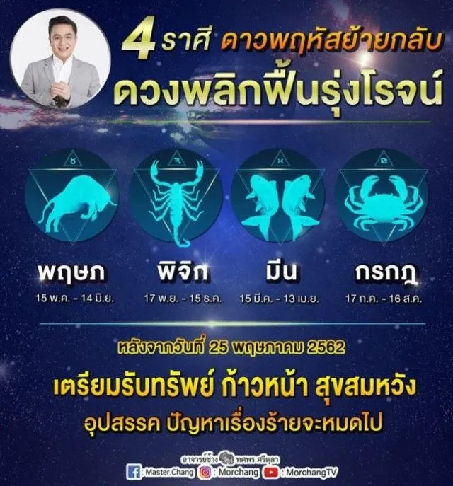 หมอช้างเตือน 4 ราศี ดาวพฤหัสย้ายกลับ เตรียมรับโชคครั้งใหญ่ รับทรัพย์ร่ำรวย