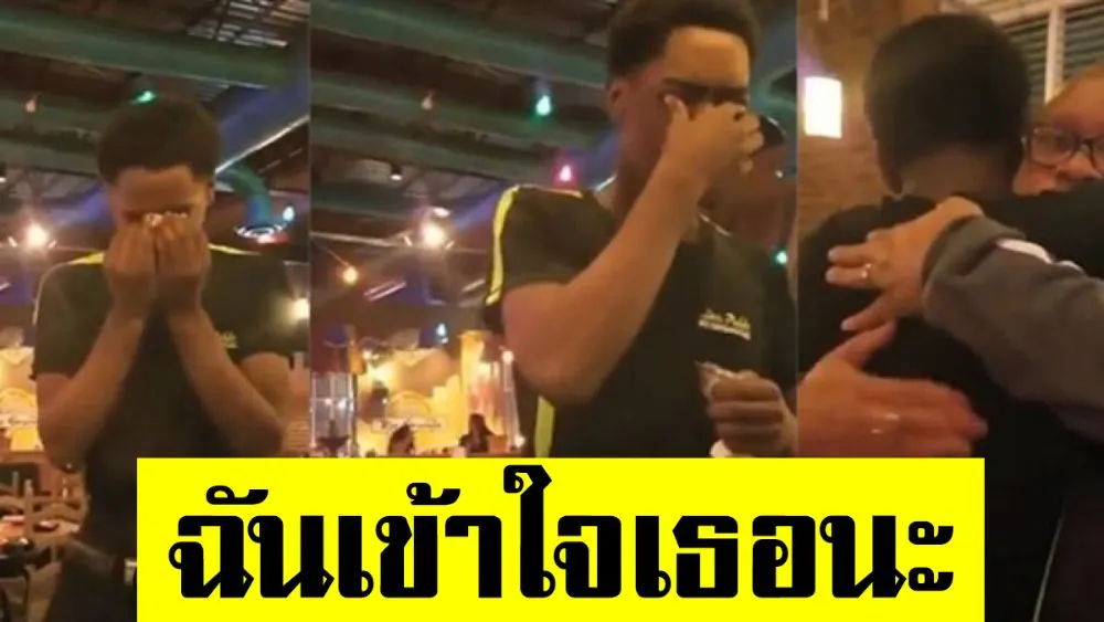 จากนั้นคุณพ่อก็กอดเด็กหนุ่มพนักงานเสิร์ฟ พร้อมให้กำลังใจเขา :
