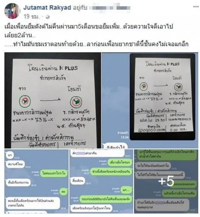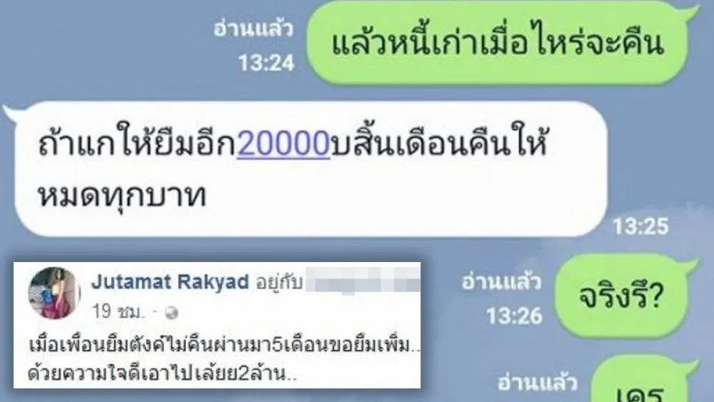 เฟซบุคคุณ Jutamat Rakyad เอาคืนเพื่อนสุดแสบ ที่มายืมเงินไป ไม่ยอมใช้คืนซักที แถมมาขอยืมใหม่อีก 2 หมื่น เธอจึงเอาคืนอย่างแสบๆคันๆ โดยได้โพสต์รูปภาพดังนี้