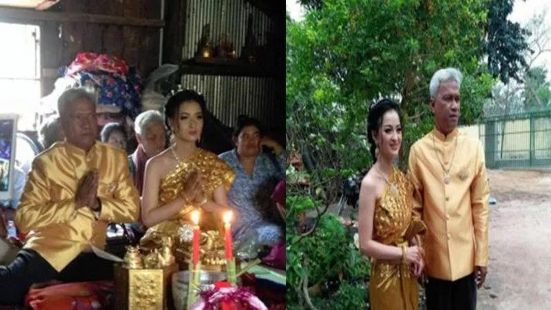 เว็บไซต์ต่างประเทศกัมพูชา รายงานเรื่องราวที่ถูกแชร์ส่งต่อกันในสังคมออนไลน์ของกัมพูชา ซึ่งเป็นเรื่องราวการแต่งงานของคู่รักต่างวัย โดยเจ้าบ่าวเป็นชายอายุ 60ปี ถ้ามองผิวเผิน หลายคนอาจบอกว่าเป็นพ่อลูกมากกว่าจะเป็นคู่รักกัน