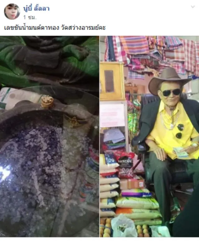 โดยมีผู้ใช้เฟสบุ๊คชื่อ นู๋บี๋ ลั้ลลา ได้ออกมาโพสต์ภาพ ตาทองงิ้วราย พร้อมได้ระบุข้อความว่า.. เลขขันน้ำมนต์ตาทอง วัดสว่างอารมย์คะ งานนี้ทำเอาคอหวยแห่ส่องกันยกใหญ่จะมีเลขอะไรบ้างนั้นไปชมภาพด้านล่างกันเลยดีกว่าจ้า