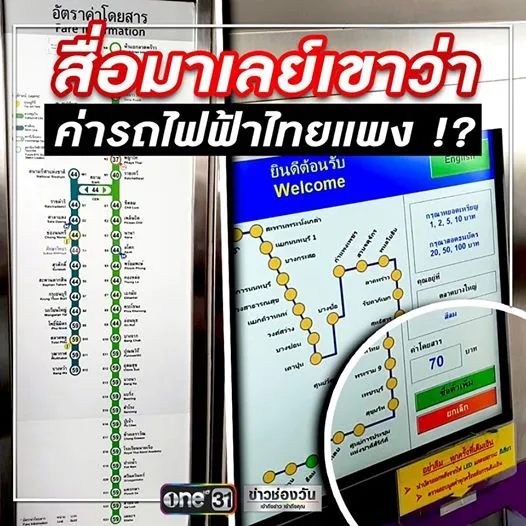สื่อมาเลเซียตีแผ่ "ค่าโดยสารรถไฟฟ้าของไทย" แพงเกินไป!! ประชาชนที่ใช้บริการคือผู้รับภาระ