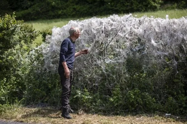 สิ่งที่คุณจะได้เห็นคือภาพของพุ่มไม้ที่ถูกหนอนดักแด้หลายพันตัวตัวทอใยขาวปกคลุมไปทั่วบริเวณ ขณะที่ชาวบ้านได้ออกมาพูดติดตลกว่ามันดูเหมือนแมงมุมยักษ์จาก Harry Potter, Aragog อีกด้วย