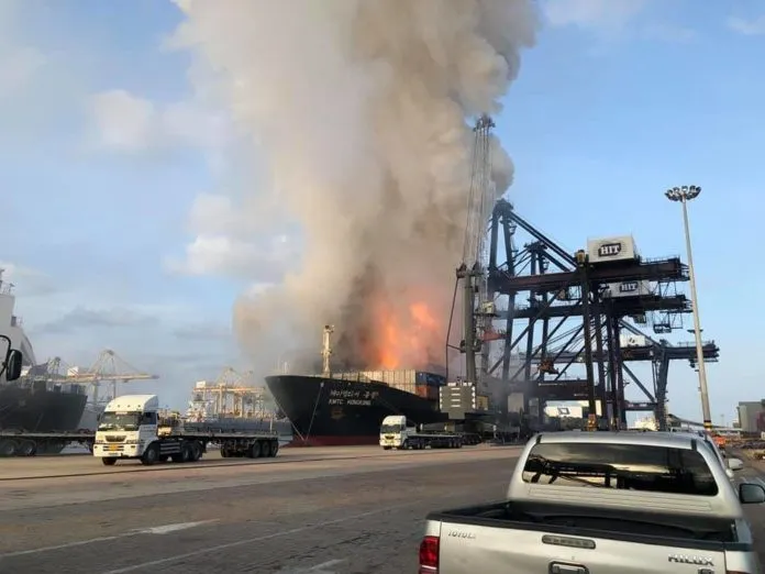 บึ้มระทึก! ท่าเรือแหลมฉบัง เผาวอด เรือสินค้า ควันดำ-สารเคมี พุุ่งขึ้นท้องฟ้า เร่งอพยพคน