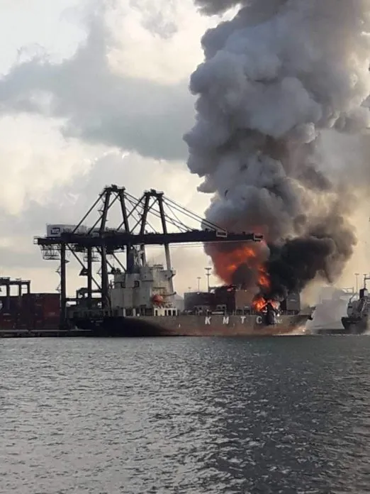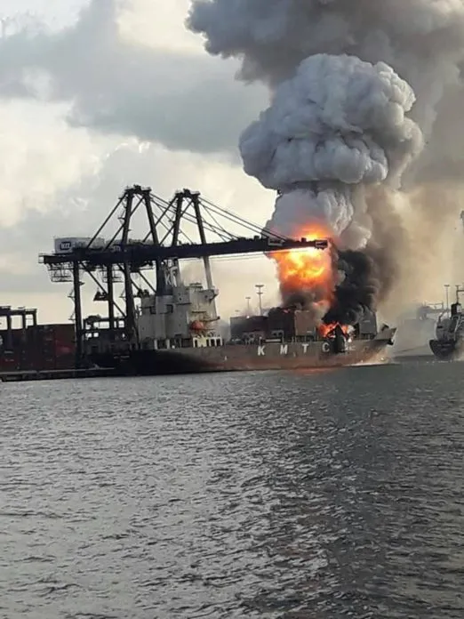 เมื่อเวลา 07.00 น. วันที่ 25 พ.ค. ผู้สื่อข่าวรายงานว่า เกิดเหตุเรือบรรทุกสินค้าขนาดใหญ่ ระเบิดอย่างรุนแรง ที่ท่าเรือแหลมฉบัง อ.ศรีราชา จ.ชลบุรี โดยจุดเกิดเหตุท่าเทียบเรือ A2 พบเปลวไฟกำลังลุกไหม้เรือสินค้าขนาดใหญ่ บรรทุกตู้คอนเทนเนอร์ มีกลุ่มควันดำจำนวนมากพวยพุ่งขึ้นท้องฟ้า ปกคลุมไปทั่วบริเวณ ส่งกลิ่นเหม็น และมีละอองสารเคมีฟุ้งกระจายร่วงหล่นเป็นวงกว้าง ขณะเดียวกัน ตำรวจ สภ.แหลมฉบัง เจ้าหน้าที่ดับเพลิงในพื้นที่ใกล้เคียงและกู้ภัยหลายหน่วย ระดมกำลังกันเข้าระงับเหตุอย่างยากลำบาก เจ้าหน้าที่ต้องประสานเรือดับเพลิงจากท่าเรือ เข้าฉีดน้ำสกัดเร่งด่วน