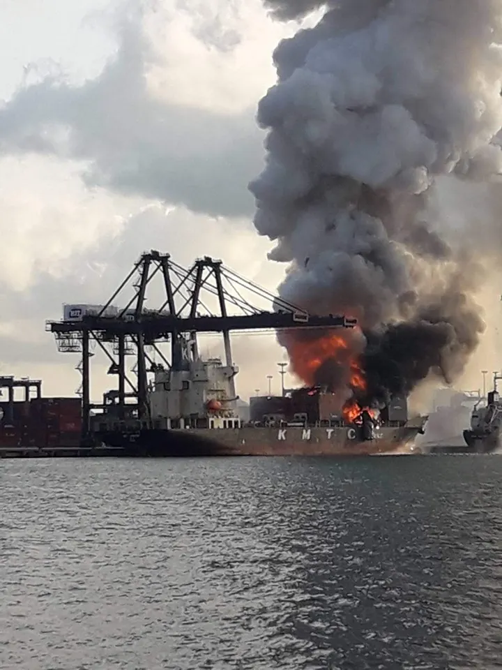 เมื่อเวลา 17.00 น.วันนี้(25 พ.ค.2562) เรือโท ยุทธนา โมกขาว ผู้อำนวยการท่าเรือแหลมฉบัง แจ้งว่า จากเหตุการณ์เพลิงไหม้ ณ ท่าเทียบเรือ บริษัท ไทยแหลมฉบัง เทอร์มินัล จำกัด (A2) ท่าเรือแหลมฉบัง ได้มีการประชุมร่วมกับหน่วยงานที่เกี่ยวข้อง เพื่อดำเนินการแก้ไขและควบคุมสถานการณ์ ตามระบบบัญชาการเหตุการณ์ภาวะฉุกเฉิน (INCIDENT COMMAND SYSTEM : ICS) โดยรถดับเพลิงของท่าเรือแหลมฉบัง พร้อมหน่วยงานสนับสนุน ได้เข้าควบคุมเพลิง จนสงบแล้ว และจากการประชุมร่วมกับผู้แทนจากหน่วยงานต่างๆ ได้แก่ กรมเจ้าท่า กรมควบคุมมลพิษ ศูนย์อำนวยการในการรักษาผลประโยชน์แห่งชาติทางทะเล (ศรชล.) ภาค 1 ทัพเรือภาคที่ 1 เทศบาลนครแหลมฉบัง สายเรือ KMTC และบริษัท ไทยแหลมฉบัง เทอร์มินัล จำกัด ในการนี้ ท่าเรือแหลมฉบัง ได้จัดเตรียมบูม หากเกิดกรณีที่มีน้ำมัน หกลงทะเล ส่วนเรื่องของพื้นที่ที่เกิดเหตุนั้น ได้มีการกั้นบริเวณพื้นที่ที่เกิดเหตุดังกล่าว เพื่อให้เจ้าพนักงานจากกองพิสูจน์หลักฐานและส่วนงานที่เกี่ยวข้องเข้าพื้นที่ เพื่อพิสูจน์ สืบทราบ หาสาเหตุ และจัดเก็บหลักฐานที่เกี่ยวข้องต่อไป
