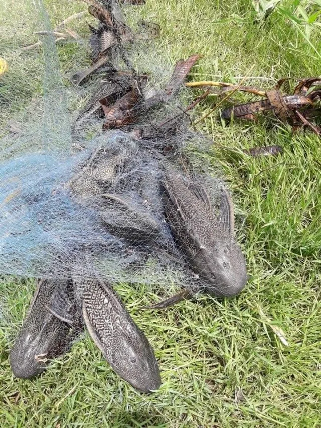 จากในภาพเผยให้เห็น ปลาซักเกอร์ ที่อยู่ภายในแหมากกว่า 10 ตัว ซึ่งปลาสายพันธุ์นี้ หรือที่หลายคนรู้จักกันในชื่อว่า ปลากดเกราะ ปลาเทศบาล ปลาดูดกระจก เป็นปลาสวยงามที่นำเข้ามาจากต่างประเทศเมื่อนานมาแล้ว ถือเป็นสิ่งมีชีวิตต่างถิ่น (Alien species) ที่ประชาชนนิยมเลี้ยงเพื่อกินตะไคร่น้ำหรือเศษอาหารในตู้ปลา เมื่อโตเต็มวัยจะมีน้ำหนักหลายกิโลกรัม ผู้เลี้ยงจึงมักจะนำไปปล่อยในแม่น้ำลำคลองต่างๆ