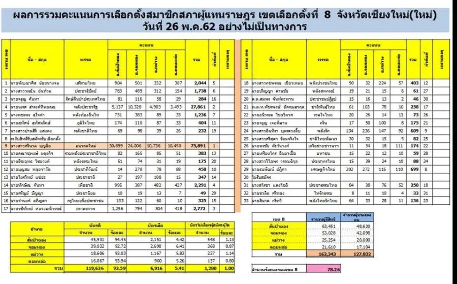 แหล่งที่มา: ข้อมูลจากเฟสบุ๊ก : สำนักงานคณะกรรมการการเลือกตั้งจังหวัดเชียงใหม่ https://www.reportdays.co