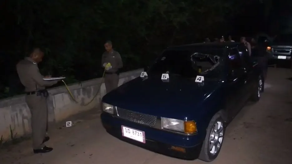 ที่เกิดเหตุพบรถยนต์กระบะแค๊ปอีซูซุ สีน้ำเงิน ป้ายทะเบียน บธ-8731 พัทลุง จอดเปิดไฟ ภายในพบผู้บาดเจ็บ 2 ราย คือ นางรัตนา คงหนู อายุ 32 ปี ได้รับบาดเจ็บบริเวณข้อมือด้านขวา และนายสราวุธ ศรีนุ่น อายุ 40ปี ถูกยิงเข้าบริเวณ มือ 1 นัด เอว 1 นัด ต้นแขน 2 นัด และลำคออีก 1 นัด แต่ต่อมาทนพิษบาดแผลไม่ไหวเสียชีวิตที่โรงพยาบาลควนขนุนในเวลาต่อมา จากการตรวจสอบที่เกิดเหตุเจ้าหน้าที่ตำรวจพบปลอกกระสุนขนาด 9 มม.ตกอยู่จำนวน 6 ปลอก และทราบว่าคนเจ็บทั้ง 2 ราย เป็นสามี ภรรยากันและเพิ่งแต่งงานไปเมื่อวันที่ 16 พ.ค.62 ที่ผ่านมา