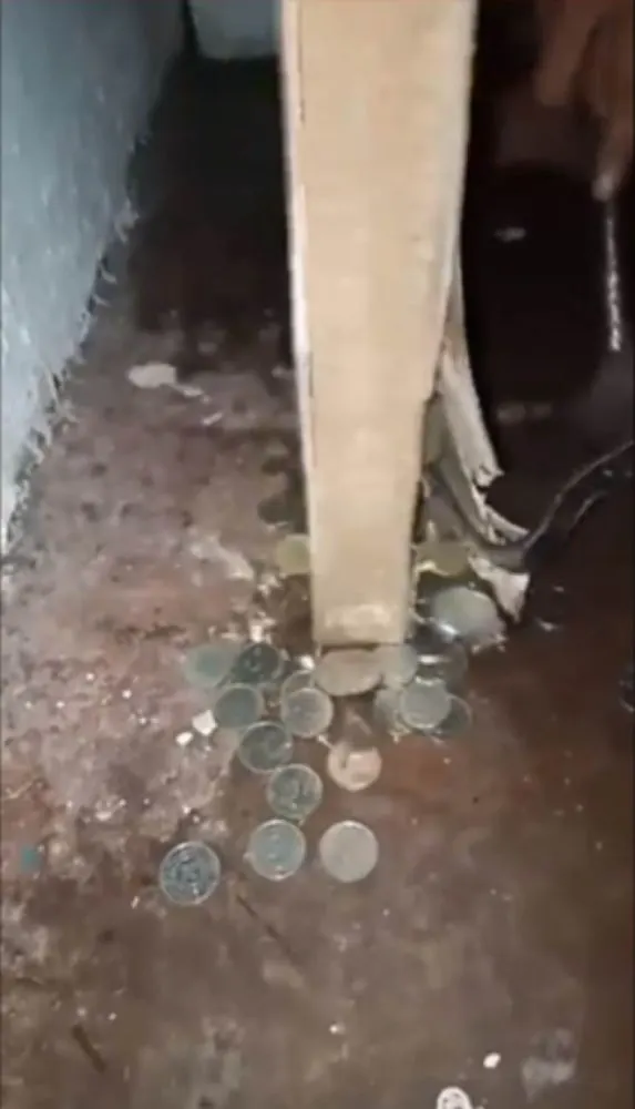 จากในคลิปเผยให้เห็นวินาทีใช้ "ค้อน" งัดมุมประตูไม้ พบเหรียญเงินจำนวนหนึ่งค่อยๆไหลออกมา ที่น่าแปลกใจกว่านั้นคือ หลังจากงัดต่อไป มีเงินเป็น ธนบัตร หล่นออกมาอีกด้วย