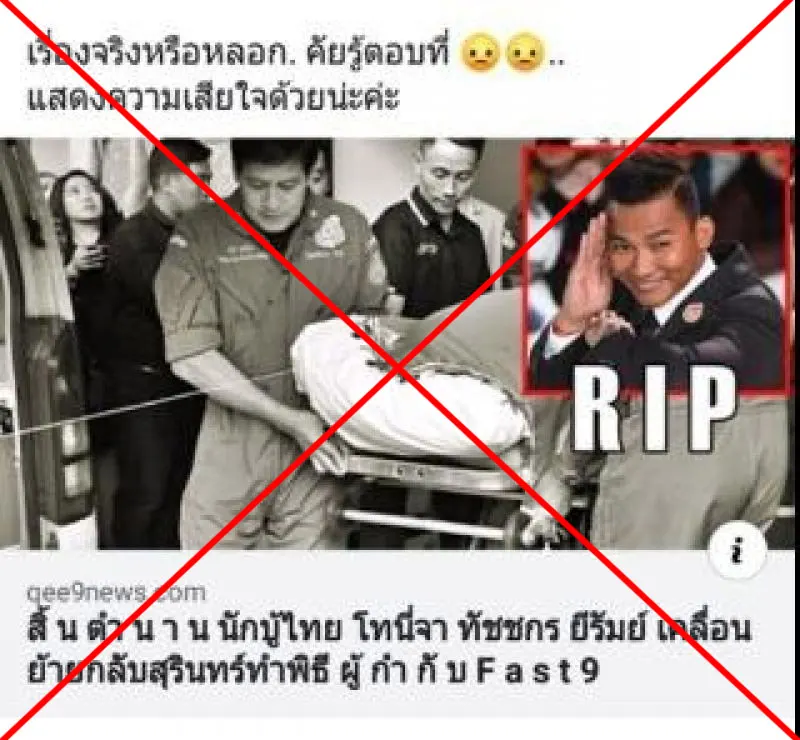 หลายคนหลังทราบข่าวดังกล่าวต่างรีบเช็คข้อมูลกันให้วุ่นวาย จนกระทั่งในเฟซบุ๊คของ Tony Jaa Official เจ้าตัวได้รับทราบข่าวลือดังกล่าวแล้ว จึงได้ตัดสินใจอัดคลิปยืนยันว่าตนเองยังมีลมหายใจมาแสดงคิวให้เห็นกันแบบเต็มๆ อีกด้วย