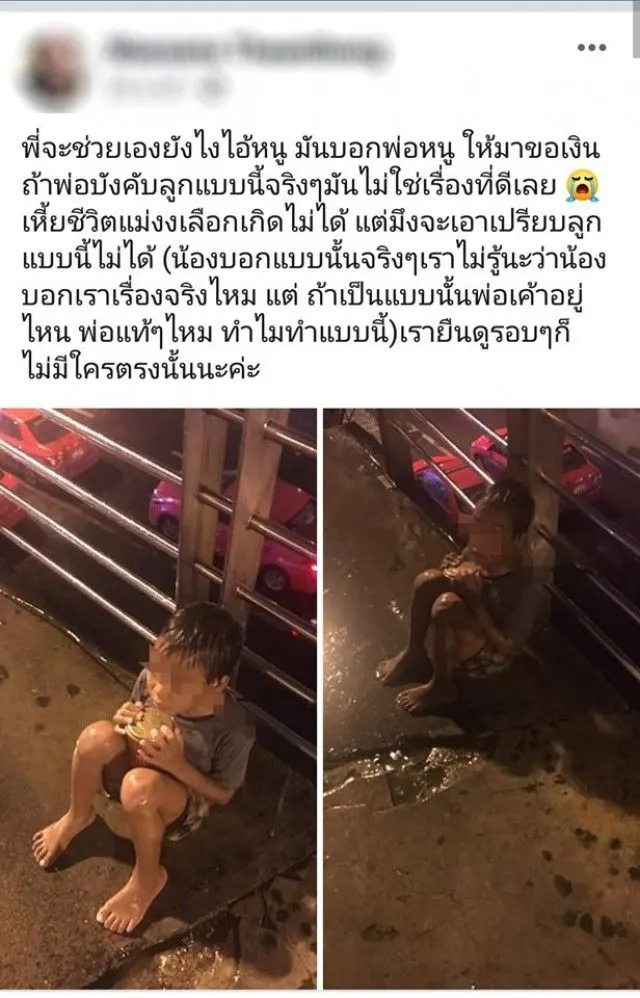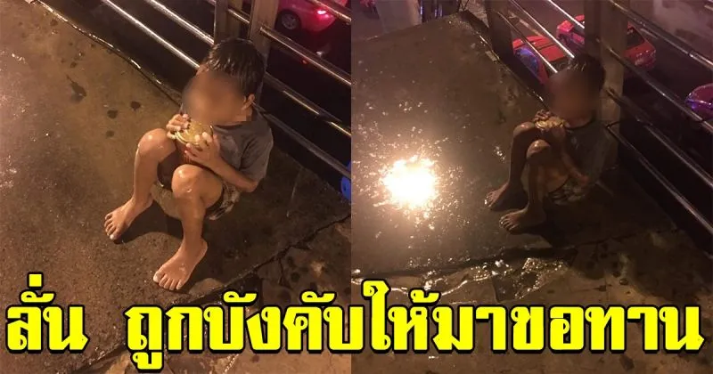 สาวเจอเด็กน้อยนั่งตากฝน ในมือถือกระป๋อง ลั่น ถูกบังคับให้มาขอทาน