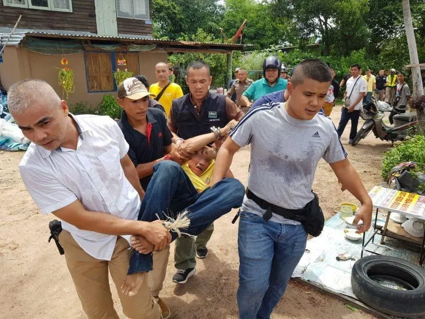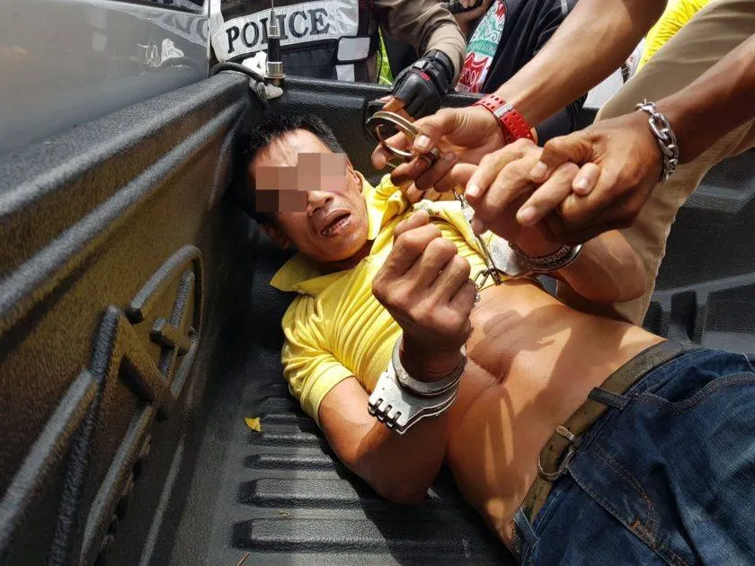 ต่อมาเจ้าหน้าที่ตำรวจจึงวางแผนปิดล้อมบริเวณพื้นที่รอบบ้าน พร้อมกั้นไม่ให้ผู้เกี่ยวข้องเข้าไปในพื้นที่อันตราย เนื่องจากคนร้ายมีอาการคลุ้มคลั่งยาเสพติด ซึ่งเกรงว่าถ้าคนร้ายฝ่าวงล้อมออกมาอาจจะได้รับบาดเจ็บจากลูกหลงได้ จากนั้นตำรวจชุดสืบสวนได้นำอุปกรณ์เข้าชาร์จจับกุมคนร้ายไว้ในได้ที่สุด โดยต้องใช้กุญแจมือถึง 3 อัน ล็อคแขน ก่อนจะรีบควบคุมตัวคนร้ายขึ้นท้ายรถกระบะตราโล่ ไปยัง สภ.บางละมุง เพื่อสอบสวนดำเนินคดี