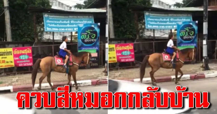 ชาวเน็ตแชร์ นักเรียนหญิงตัวเล็กควบม้าสีหมอกกลับบ้าน ชิคมาก (คลิป)