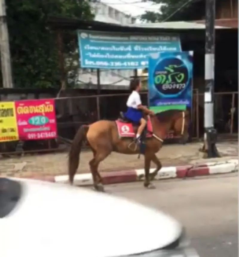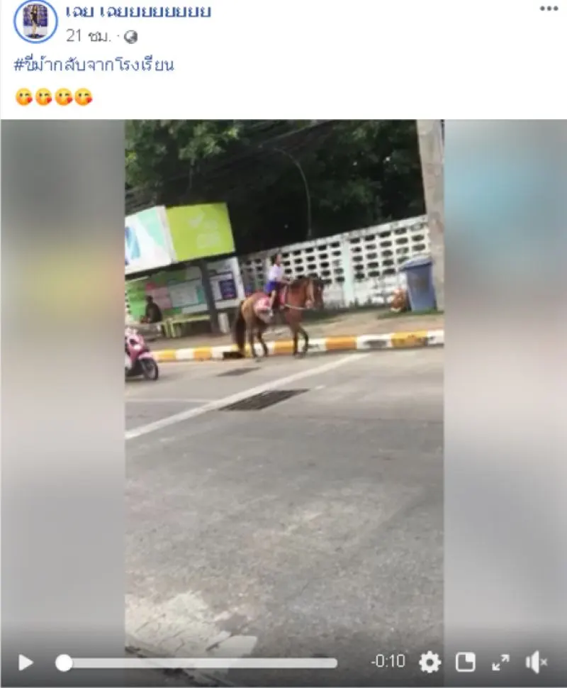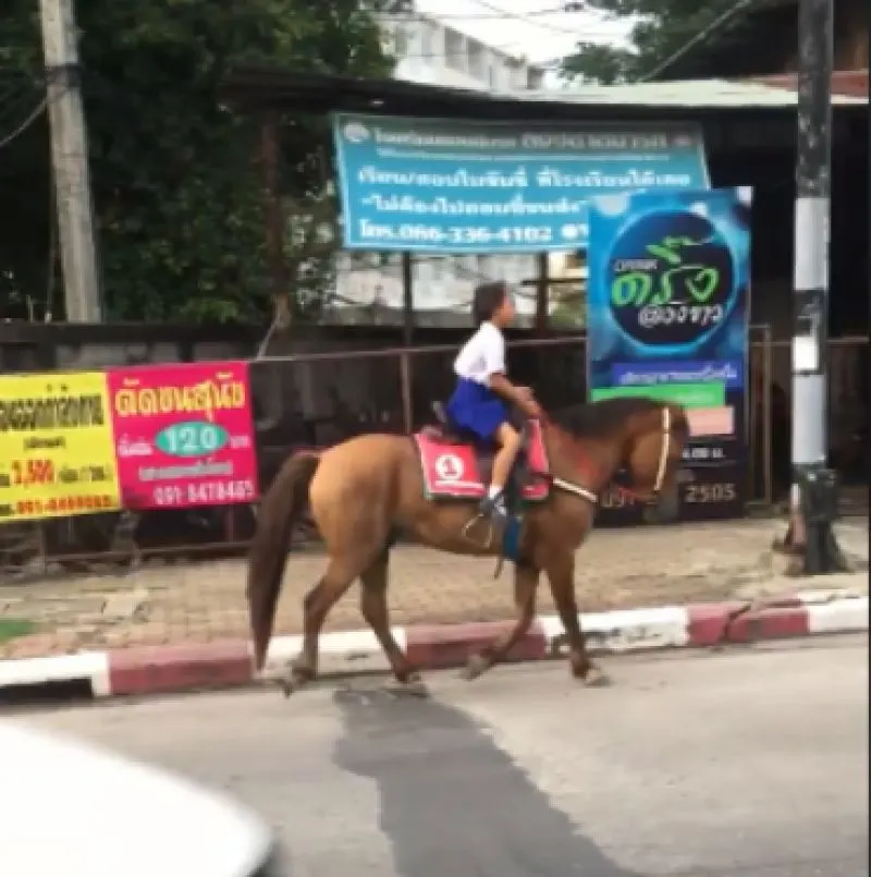 วันที่ 28 พ.ค. เพจผู้ใช้เฟซบุ๊กชื่อ เฉย เฉยยยยยยยย ได้โพสต์ภาพวีดิโอขณะหนูน้อยวัยใส กำลังขวบม้ากลับจากโรงเรียน ซึ้งเป็นเด็กนักเรียนหญิงสวมใส่ชุดนักเรียนอนุบาล กำลังขี่ม้าคู่ใจกลับจากโรงเรียน บริเวณแยก โรงแรมกรีนเวิลด์ จังหวัดสงขลา