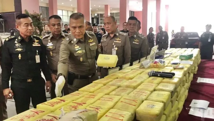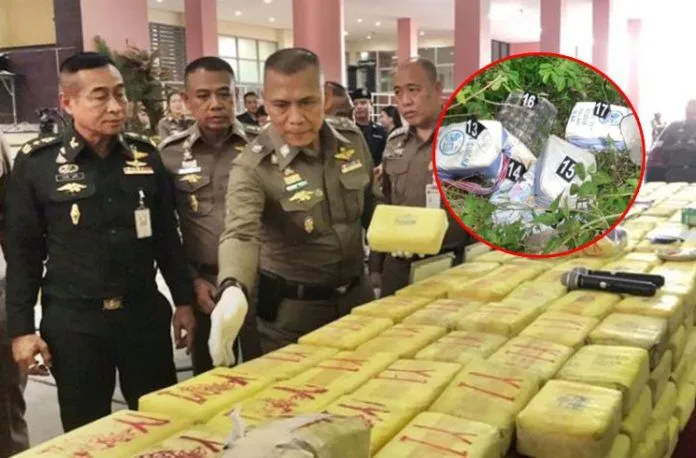 พล.ต.ท.ชินภัทร กล่าวต่อว่า จนเมื่อวันที่ 26 พ.ค. ที่ผ่านมา ทางบช.ปส.ร่วมกับ สภ.โกรกพระ ชุดสืบสวนภูธร จ.นครสวรรค์ ไล่ตามรถต้องสงสัยทะเบียนกรุงเทพมหานคร ก่อนที่ผู้ขับขี่จะทิ้งของกลางลงร่องน้ำข้างสระสาธารณะ ม.1 ต.เนินศาลา อ.โกรกพระ จ.นครสวรรค์