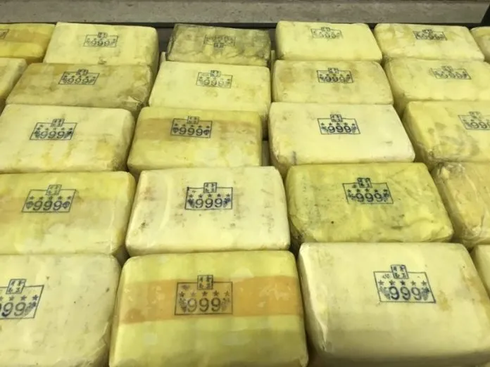 ตรวจพบยาบ้าของกลางนับได้ประมาณ 4,460,000 เม็ด มูลค่ากว่า 800 ล้านบาท สัญลักษณ์ 999 สีแดง และสีน้ำเงิน ซึ่งเป็นของกลุ่มว้าใต้ สัญลักษณ์ Y1 สีแดง และรูปผลองุ่นสีแดงของกลุ่มว้าเหนือ จากนั้นสืบสวนขยายผลสามารถจับกุมผู้ต้องหาทั้ง 2 ได้หน้าบ้านพักใน ต.วังเย็น อ.เมือง จ.กาญจนบุรี ในช่วงเย็นวันเดียวกัน เบื้องต้นแจ้งข้อหา “ร่วมกันกับพวกที่หลบหนี มียาเสพติดให้โทษประเภท 1 (ยาบ้า) ไว้ในครอบครองเพื่อจำหน่าย” ส่งตัวให้พนักงานสอบสวน บก.ปส.2 ดำเนินคดีต่อไป