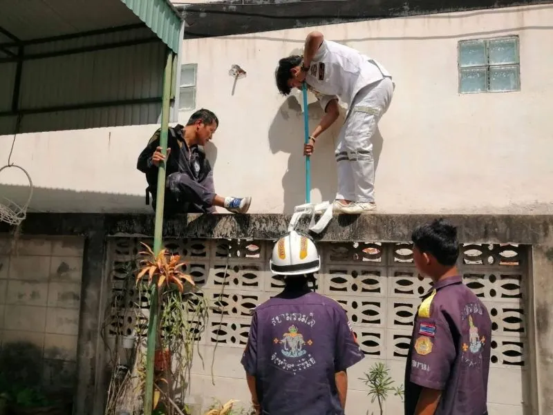 จากการสอบถาม นางสุภัทรวดี อายุ 43 ปี เจ้าของร้านภัทรพานิช กล่าวว่า ตนมาเปิดร้านตอนเช้าได้ยินเสียงสุนัขร้องข้างตึก แต่ไม่ได้สนใจอะไรเพราะเสียงไม่ได้ดัง แต่มาได้ยินอีกทีจึงถามเพื่อนบ้านว่าได้ยินเหมือนกันไหม จึงใช้บันไดปีนดูพบว่ามีสุนัขติดอยู่ในกำแพง จึงแจ้งให้กู้ภัยมาช่วย
